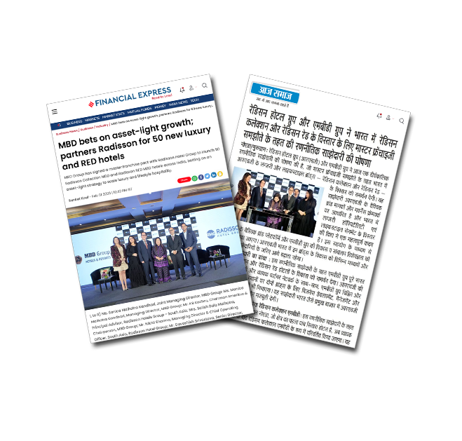 MBD Group has signed a master franchise pact with Radisson Hotel Group to launch 50 Radisson Collection MBD and Radisson RED MBD hotels across India, betting on an asset-light strategy to scale luxury and lifestyle hospitality.